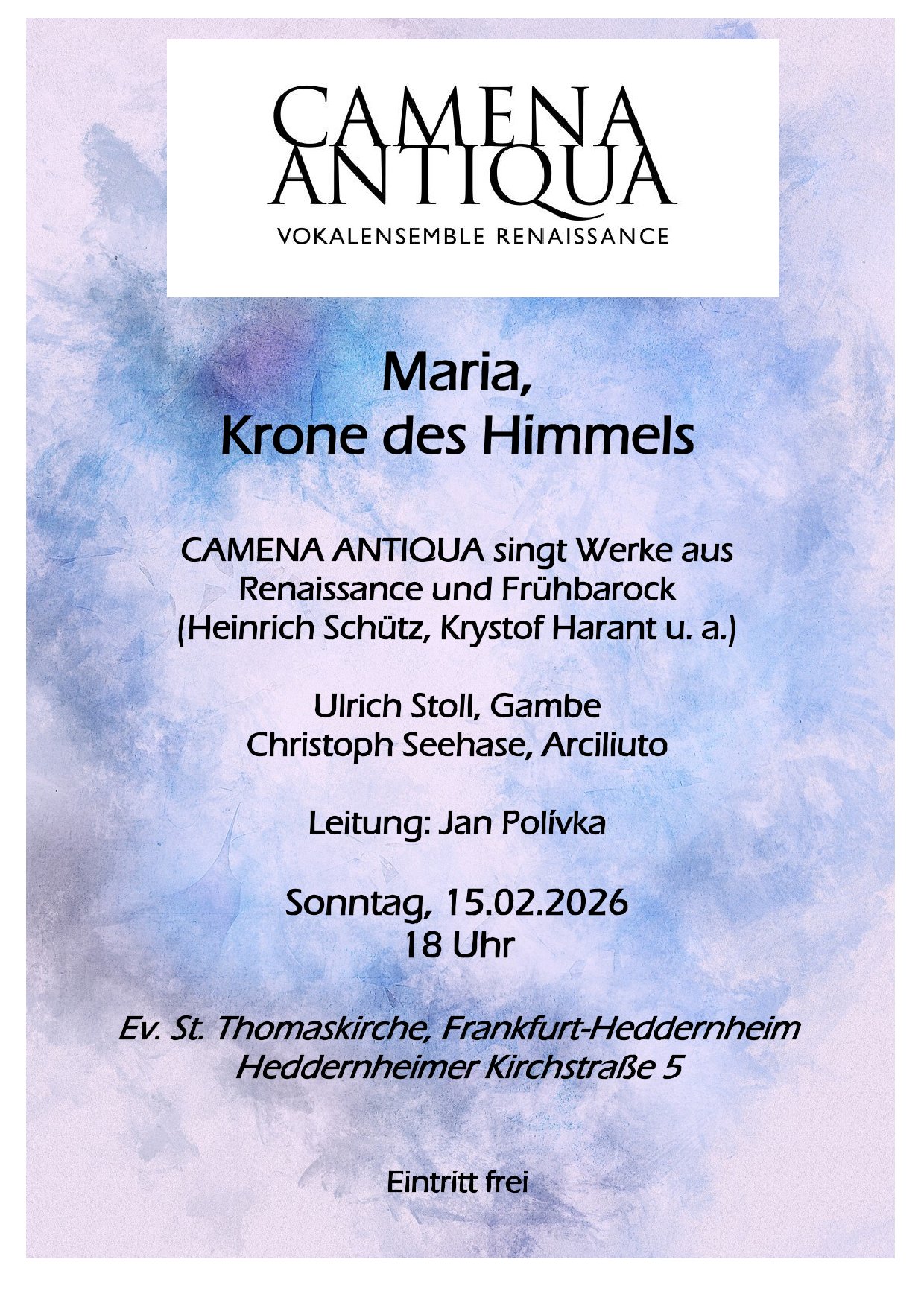 CAMENA ANTIQUA mit dem Programm "Maria, Krone des Himmels" in der evangelischen St. Thomaskirche in Frankfurt-Heddernheim